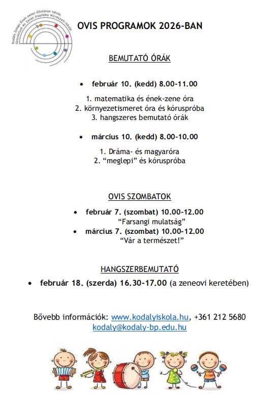 Szeretettel várunk minden érdeklődőt beiskolázási programjainkon. A szerdai zeneovi foglalkozásokon kívül számos rendezvénnyel várjuk a nagycsoportos óvodásokat és szüleiket.